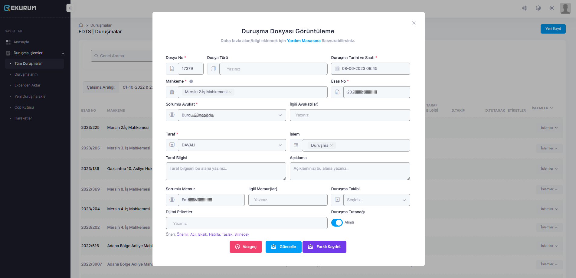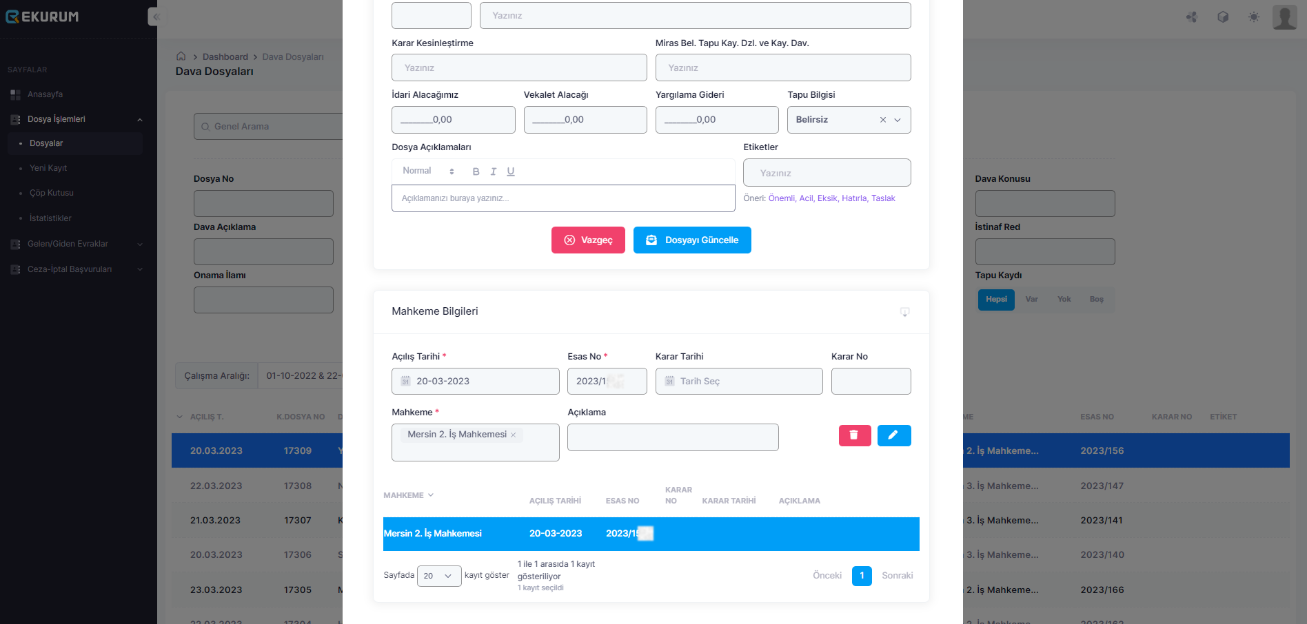 Kolay ve Hızlı Aramayla Kriz Anlarından ve Dosya Karmaşasından Kurtulacaksınız. Özel Etiketler ve Filtrelemeler Sayesinde Aradığınız Bir Kayda Hemen Ulaşabileceksiniz.